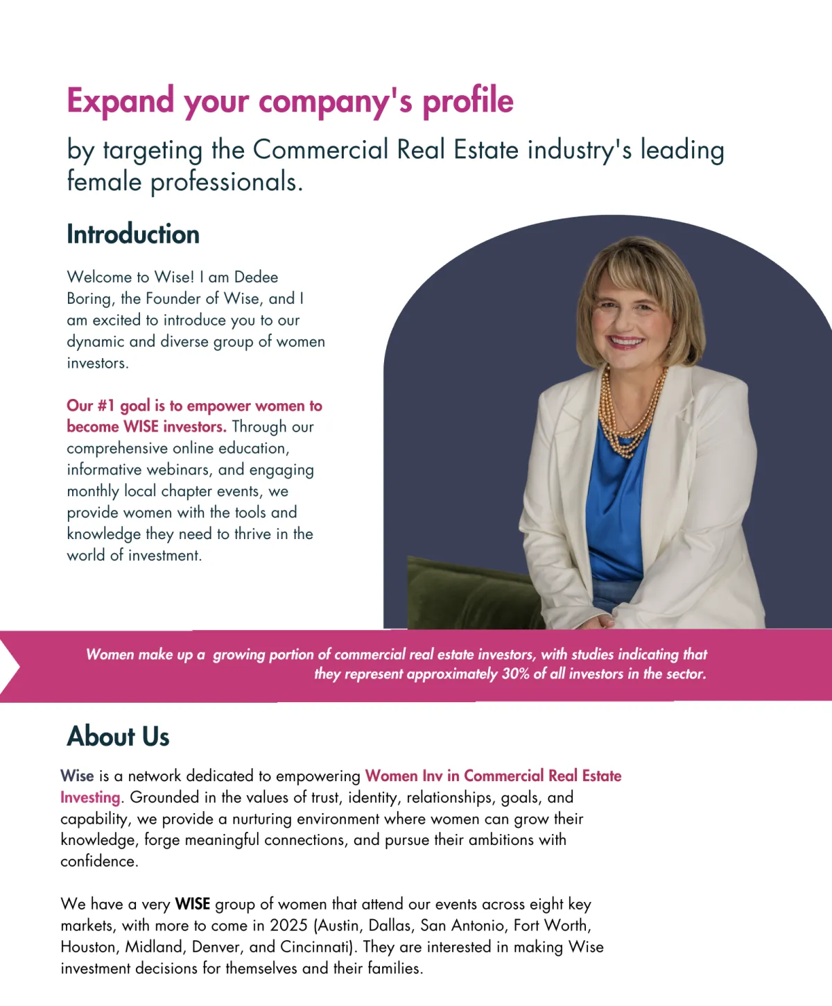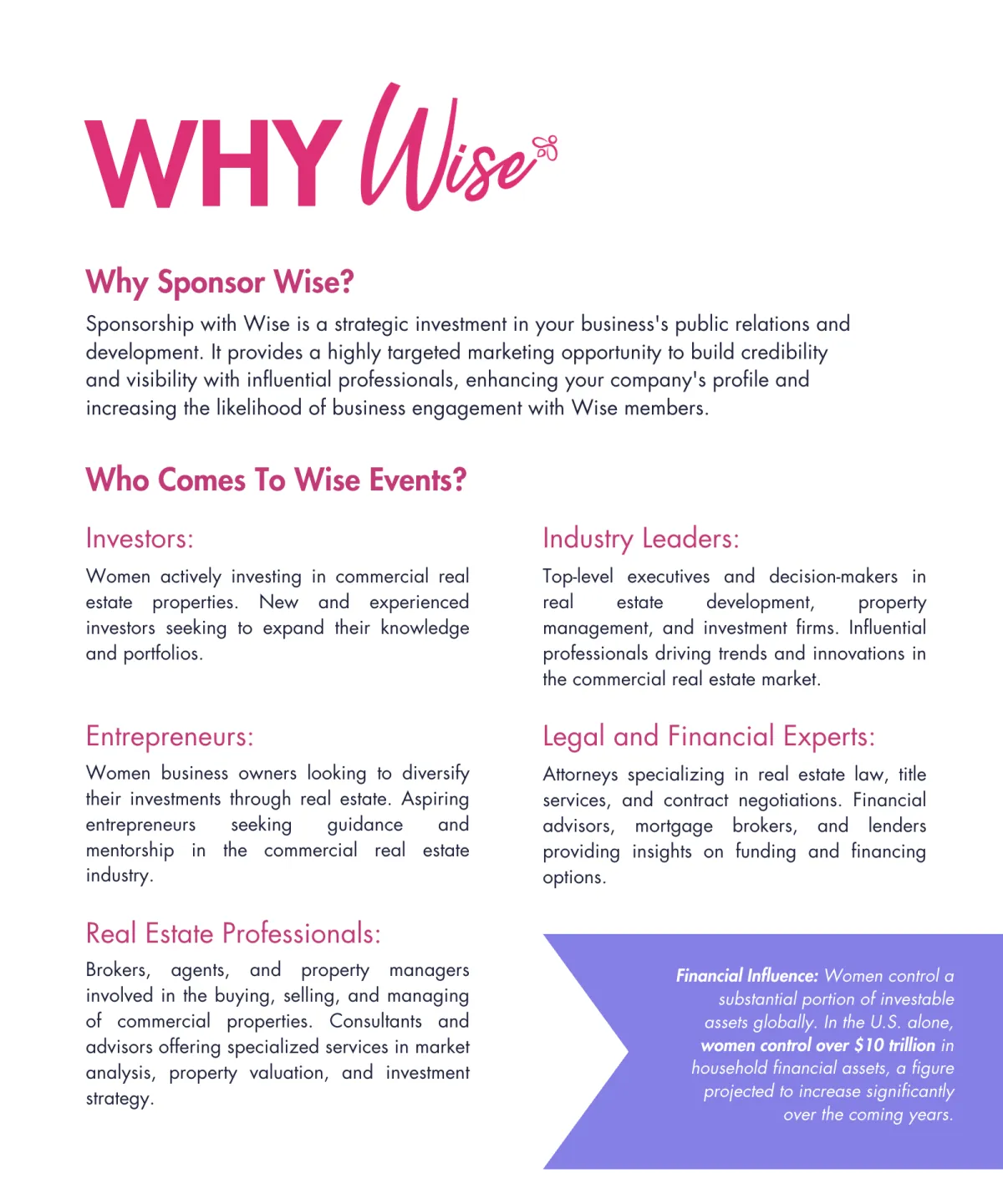 All content provided by Wise is for educational and informational purposes only. Nothing presented on this website, in our programs, events, webinars, memberships, or materials constitutes financial, investment, legal, or tax advice. We are not acting as your financial advisor, attorney, accountant, or fiduciary.